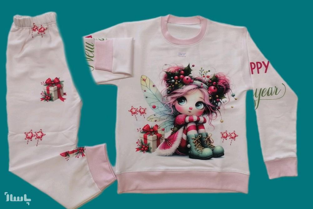 بلوز شلوار دخترانهطرح پشت ورو چاپ کزیسمس