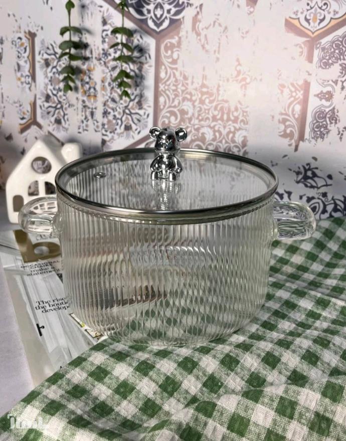 قابلمه پیرکس شعله مستقیم 1.5 لیتر خرسی ساده نقره ای