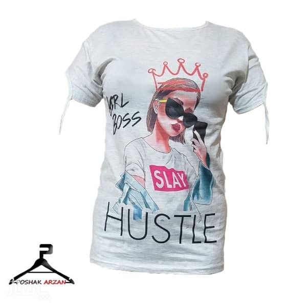 تیشرت زنانه آستین کوتاه کشی طرحدار