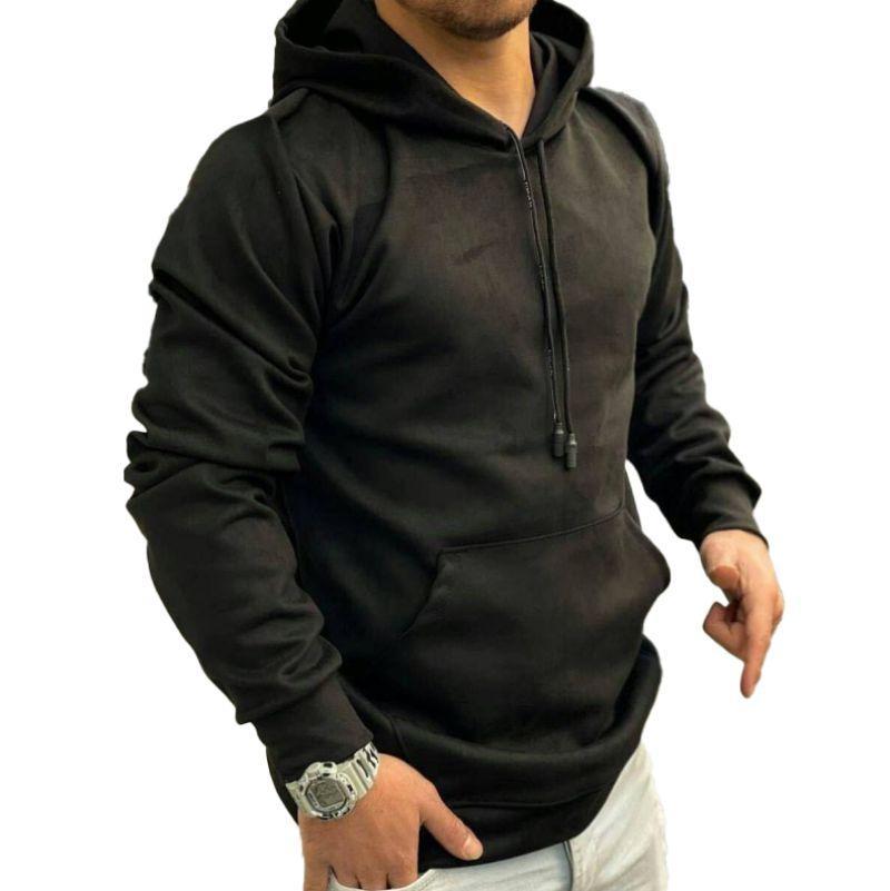 هودی مردانه کلاه دار مخمل سوییت مشکی