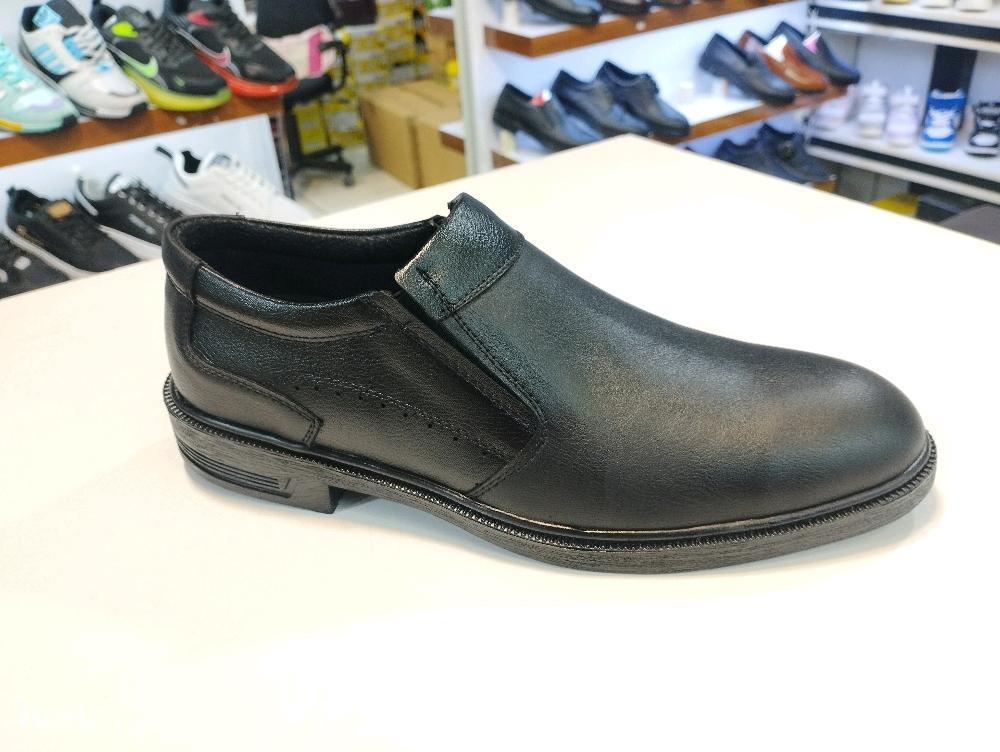 کفش مردانه بدون بند با رویه چرم صنعتی پشت چرم و آستر سوئیت و زیره پی وی سی سایز بندی 40 تا 44
