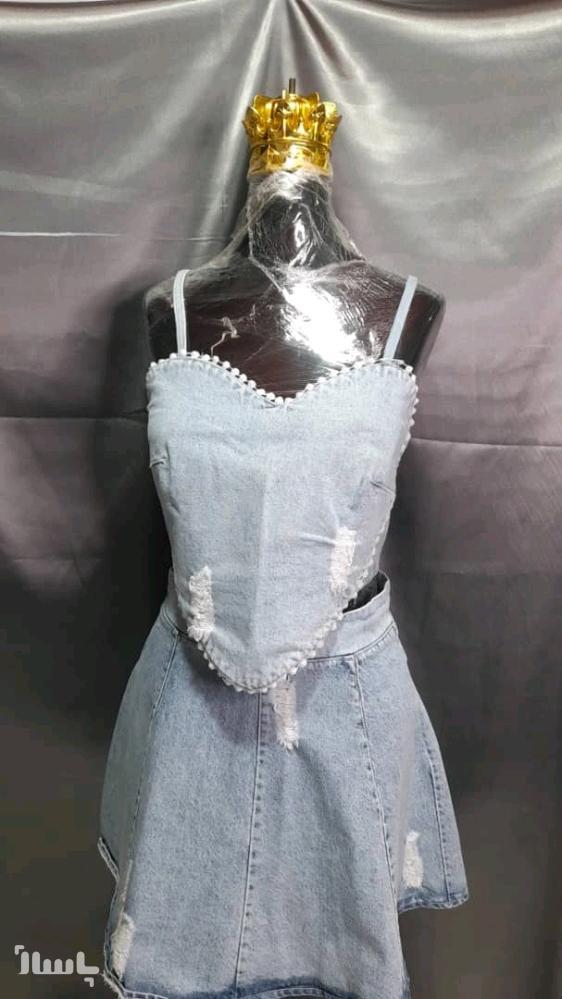 تاپ و دامن قلبی جنس جین،تنخور شیک و عالییییی،ایستایی خیلی خوبی داره،سایزبندی داره