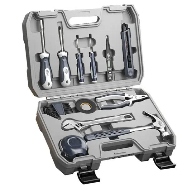این جعبه ابزار با ابعاد 34×28×9 سانتیمتر و وزن حدود 2000 گرم، نه آنقدر بزرگ است که حملش سخت باشد و نه آنقدر کوچک که کاراییاش محدود شود. ابزارهای داخل این مجموعه شامل پیچگوشتیهای متنوع، دمباریک، کاتر، متر نواری، آچار، چکش و چند قطعه جانبی کاربردی است. تمام ابزارها از فولاد مقاوم و باکیفیت ساخته شدهاند تا در برابر فشار، ضربه و استفاده مداوم دوام طولانیمدت داشته باشند.