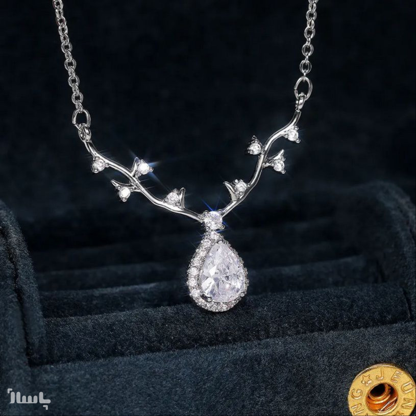 - گردنبند زیبا طرح نگین اشک و شاخ گوزن متصل ،