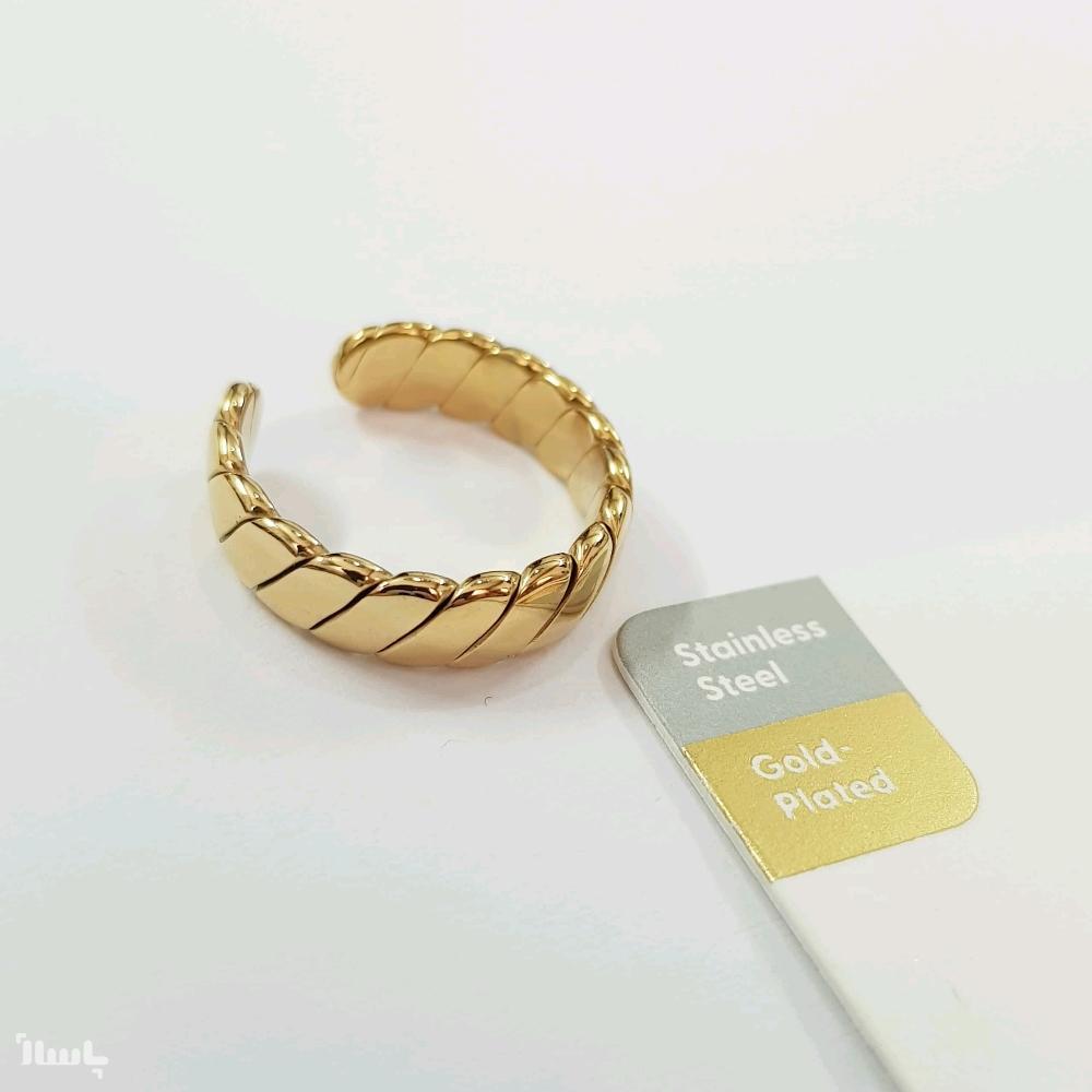 انگشتر استیل با آبکاری طلا از برند Six آلمان ، کیفیت عالی ، فری سایز ، مناسب استفاده دائم روزانه