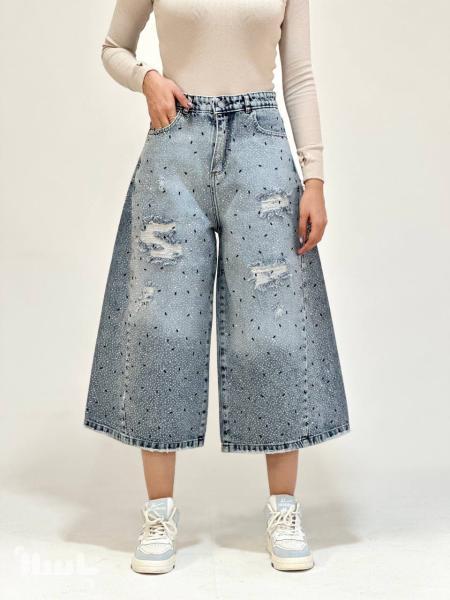 شلوار ایزی بگ فول نگین آبی پارچه ترک
