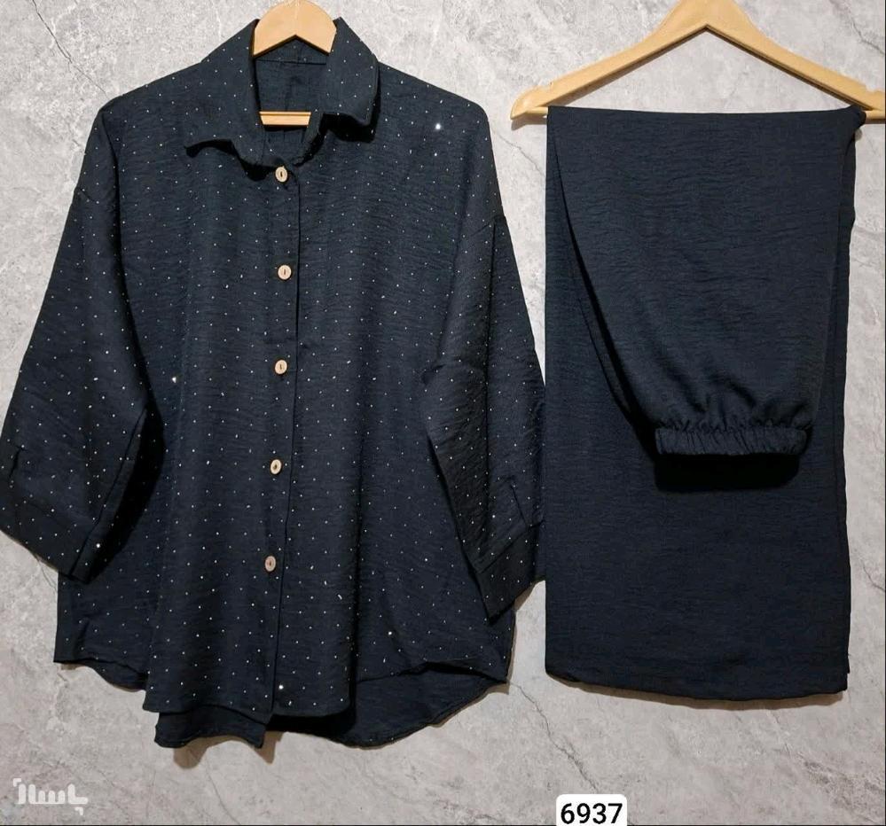 ست مانتو و شلوار سایزبزرگ نگین دار