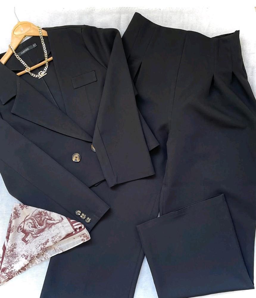 کراپ کت و شلوار پلیسه دار جنس مازراتی گرم بالا مناسب پاییز و زمستان قد شلوار 107سانت پشت کش دار