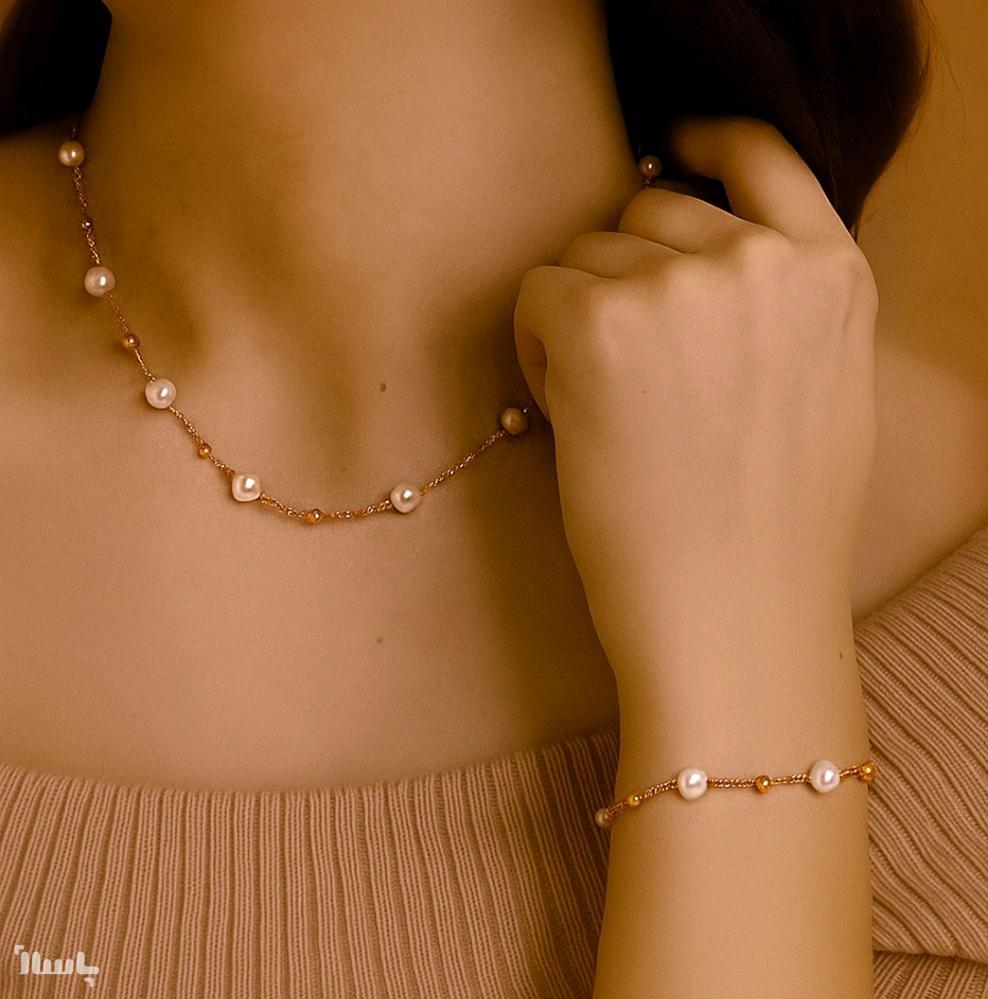 گردنبند و دستبند مروارید پرورشی و خلخال