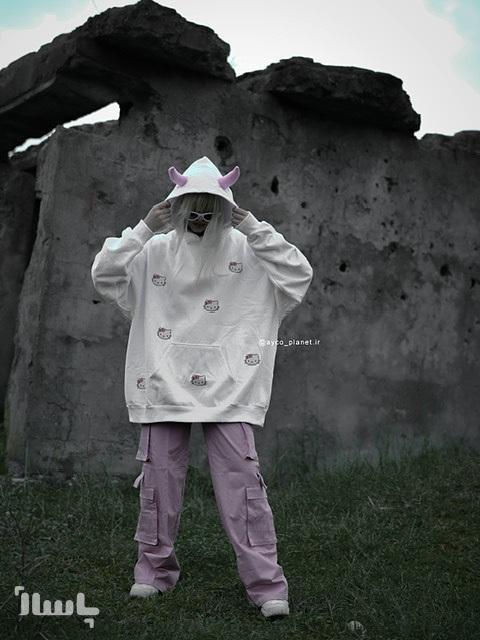 هودی سفید توکرکی هلوکیتی شاخ صورتی دخترونه زنونه