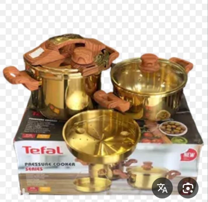 زودپز 2قلو طلایی مارک تفال جنس استیل ضد زنگ و ضدخش کف چدن 3لایه دارای سوپاپ اطمینان خودکار 4و6 لیتری دارای سبد بخارپز دارای درب پیرکس مشترک ...