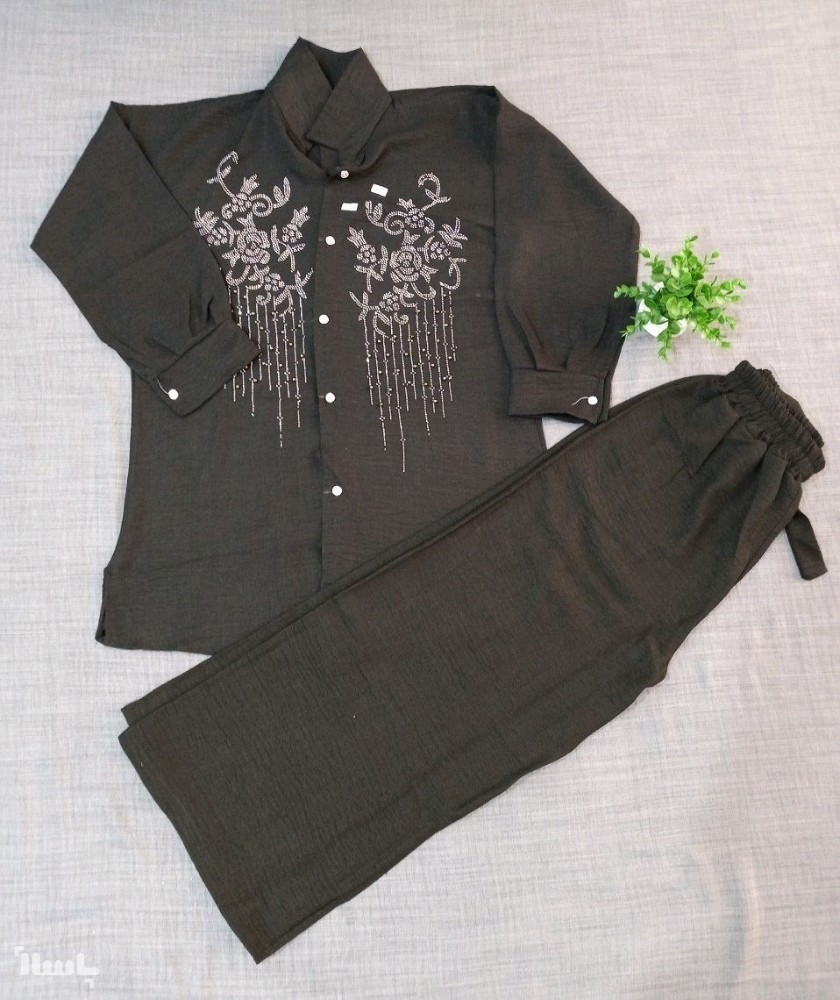مانتو شلوار زنانه نخی مدل نگین دار قواره دار