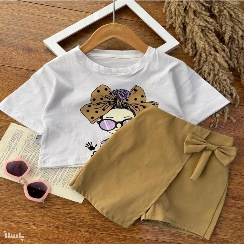 تی شرت شلوارک دختر پاپیونی دخترانه کد :4942
