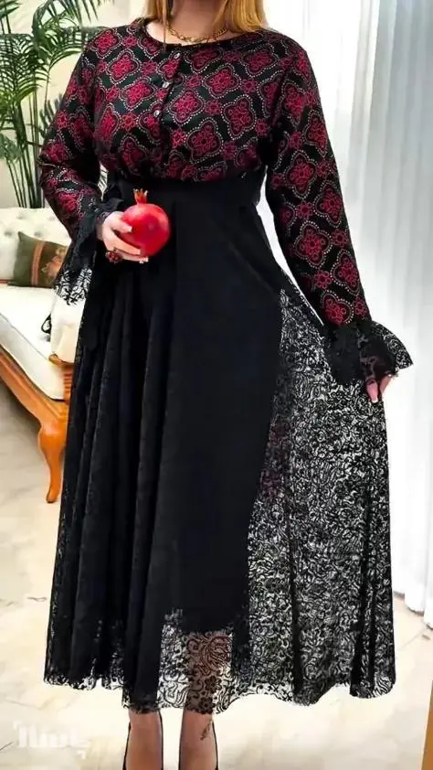 دامنی کار گیپور زیرش آستری ژرسه خورده کلوش