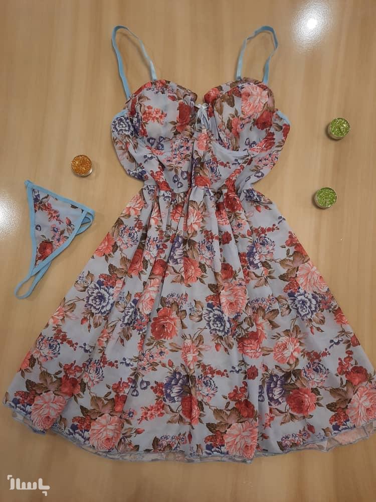 لباس خواب زنانه گل دار فنر دار حریر کش