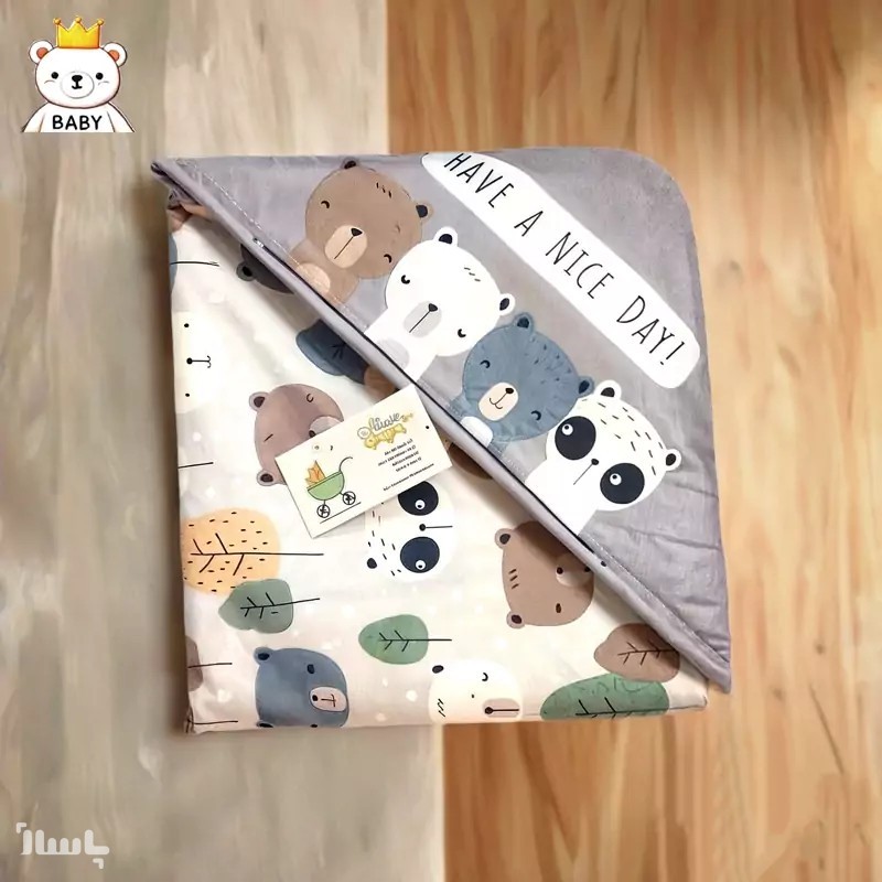 کلاه دار بودن پتوی دورپیچ برای پوشاندن سر نوزاد بسیار مناسب است