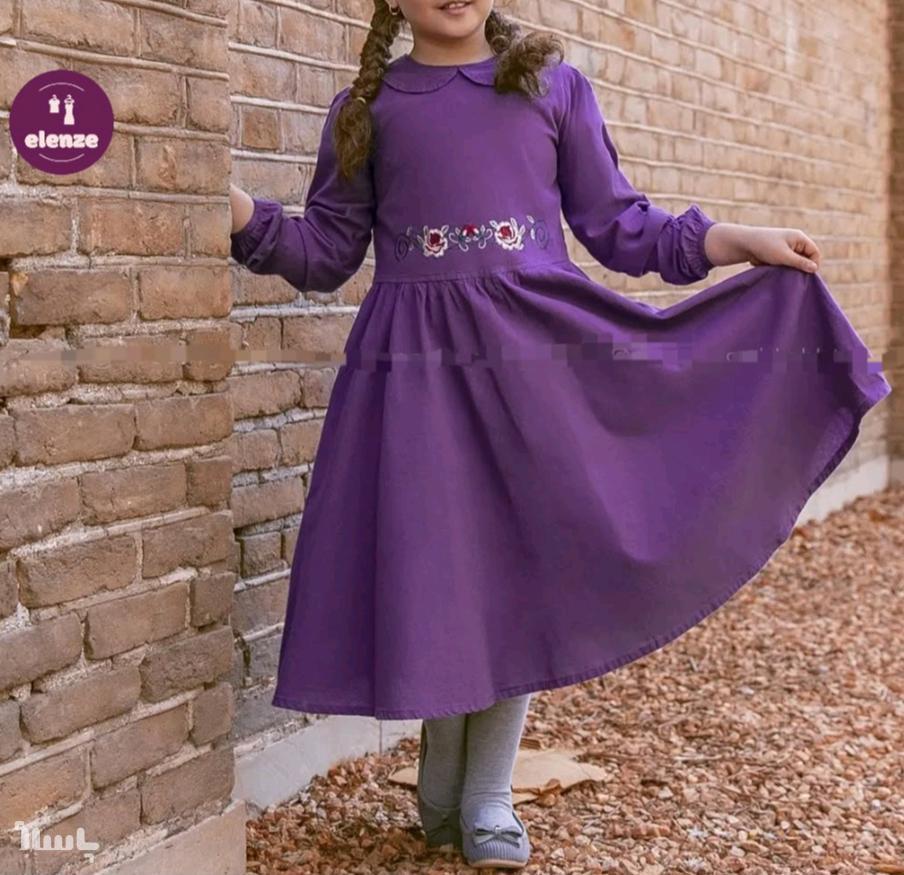 پیراهن دخترانه نخی الیاف طبیعی بنفش مدل شادین