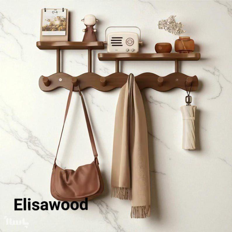 جالباسی شلف دار 6 قلابه در دو رنگ گردویی و خودرنگ چوب این محصول بسیار با کیفیت خاص ولاکچری میباشد