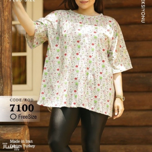 تیشرت فانتزی یقه گرد آستین کیمونو