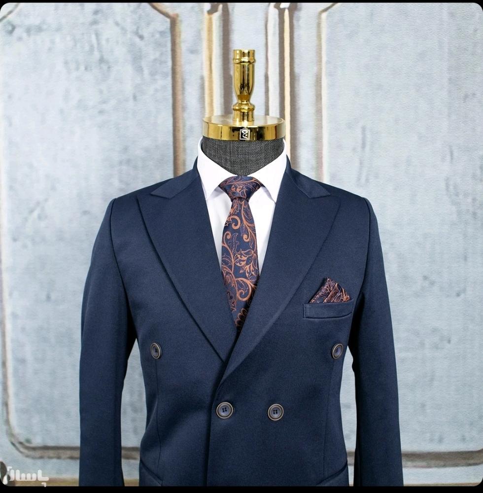کت و شلوار دبل برست سوپر کش مردانه سرمه ای لایت سایز 46تا56
