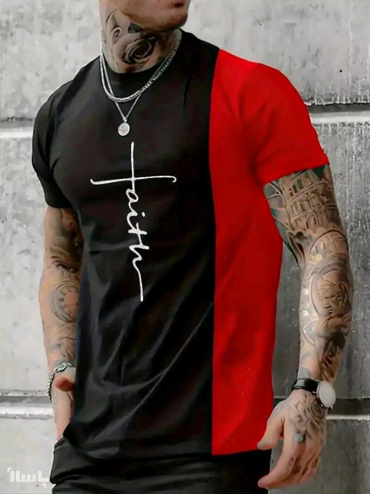 تیشرت مردانه مشکی قرمز پنبه طرح Faith