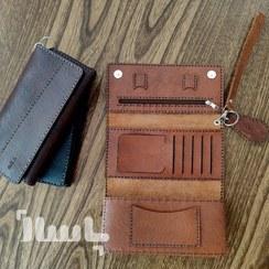 کیف پول و موبایل سهلت چرم مدل ترنج دستدوز، جادار، با بند و جاکلیدی