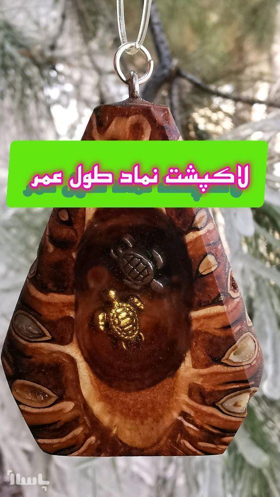 گردن آویز دست ساز اپوکسی کاج مدل نماد لاکپشت طرح کاج طبیعی کد 1367(ار