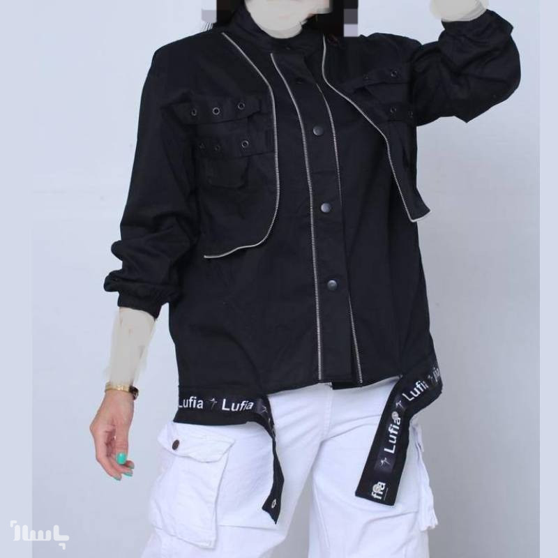 نوار پایین مانتو که نوشته لوفیا روی آن طراحی شده، با دکمه فشاری باز و بسته میشود.