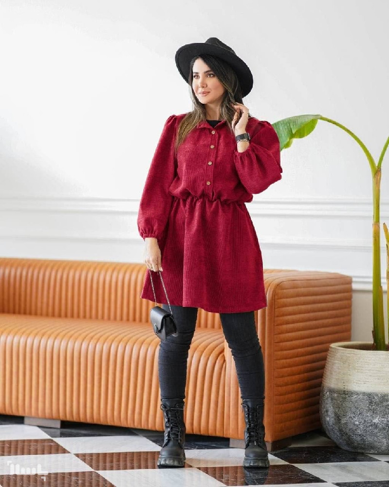 پیراهن مانتویی مخمل کبریتی یلدایی