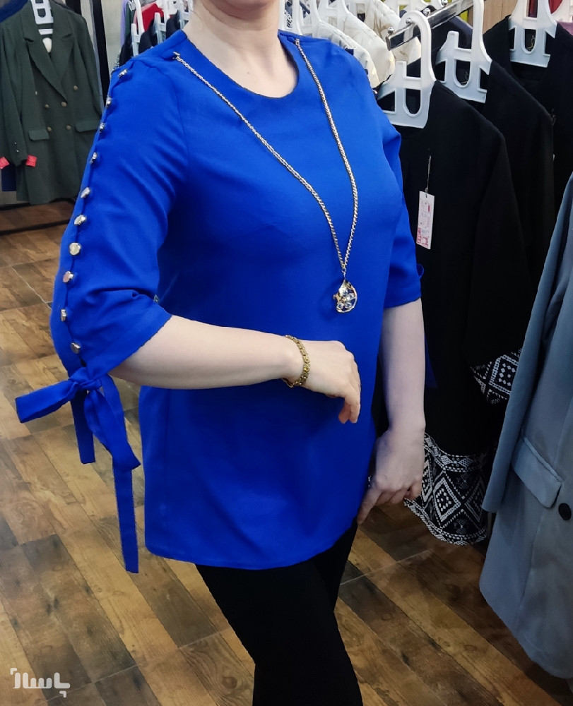 پارچه کرپ آستین دکمه دار دارای گردنبند و مچ بندی