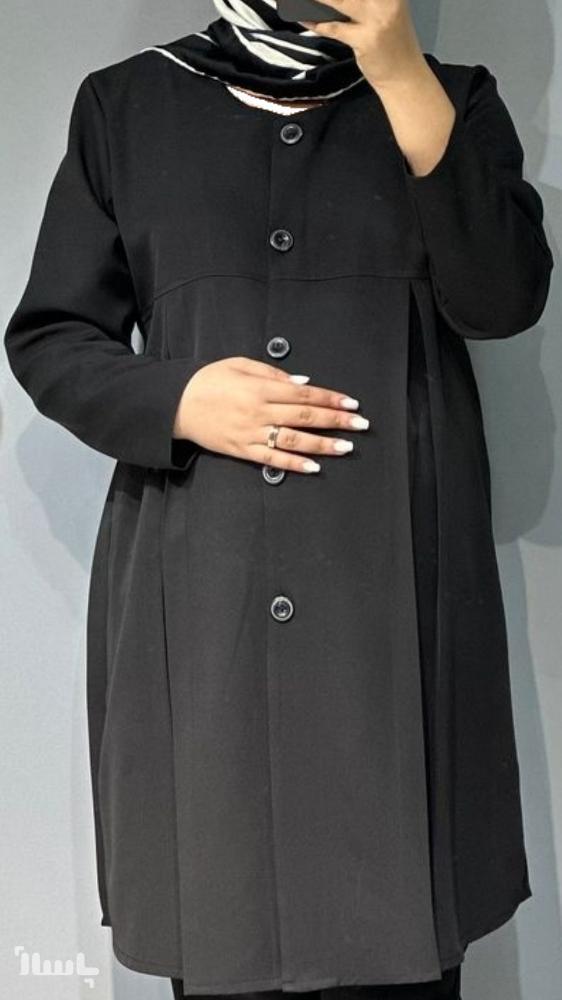 مانتو بارداری اداری با پارچه کرپ مازراتی جهت استفاده بانوان شاغل باردار در ادارات در 2 رنگ سرمه ای و مشکی در 2 سایز قواره بزرگ