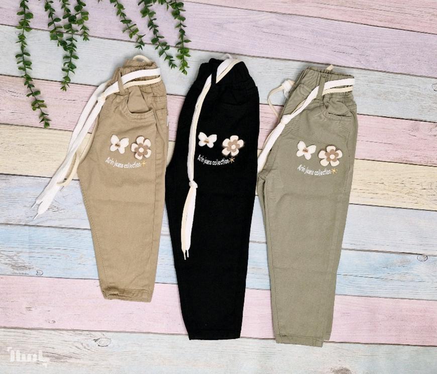 شلوار کتان دخترانه گل برجسته