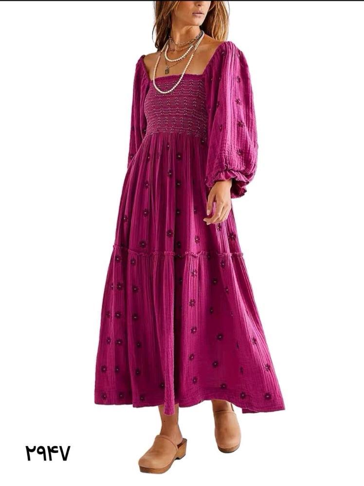 پیراهن ساحلی زنانه کتان ترک مدل بلند