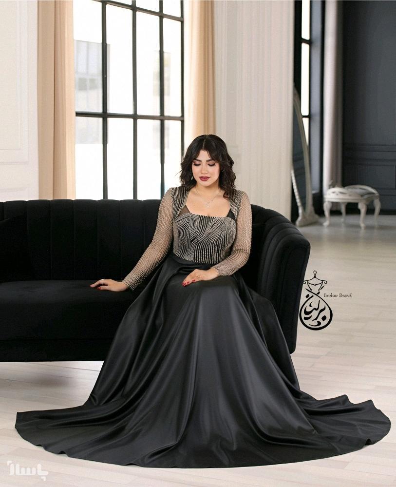 پیراهن مهمانی زنانه حریر شاین ودامن برجسته مدل پناه