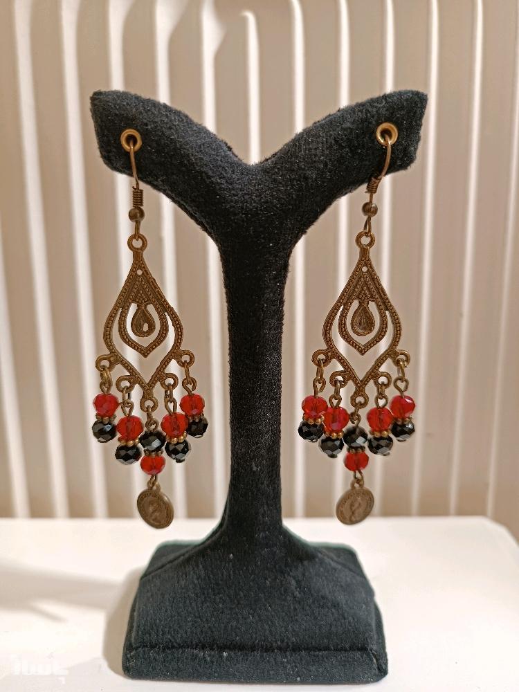 گوشواره سنتی آویزدارزرشکی و مشکی