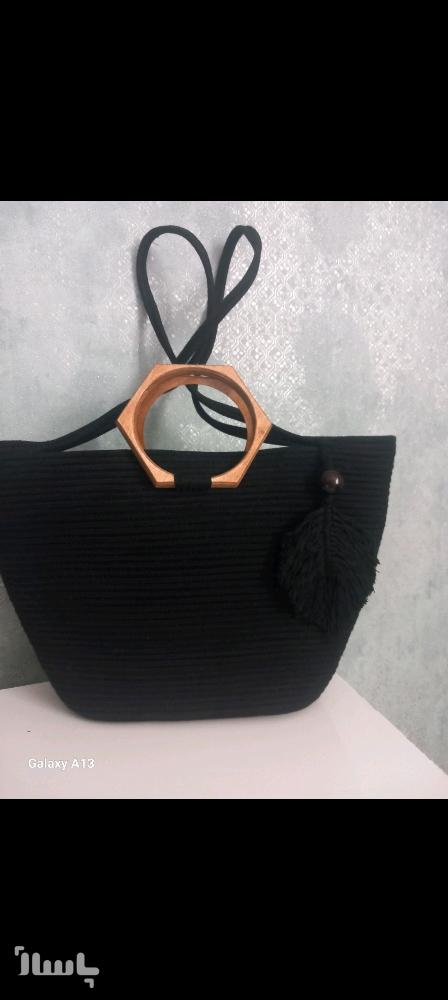 ابعاد این کیف 25 در 12 سامتیمتر و ارتفاع 28 طراحی شده است جیب داخلی چسب دار در داخل آن تعبیه شده است و دسته چوبی دارد و از نخ بسیار با کیفیت تولید شده است.