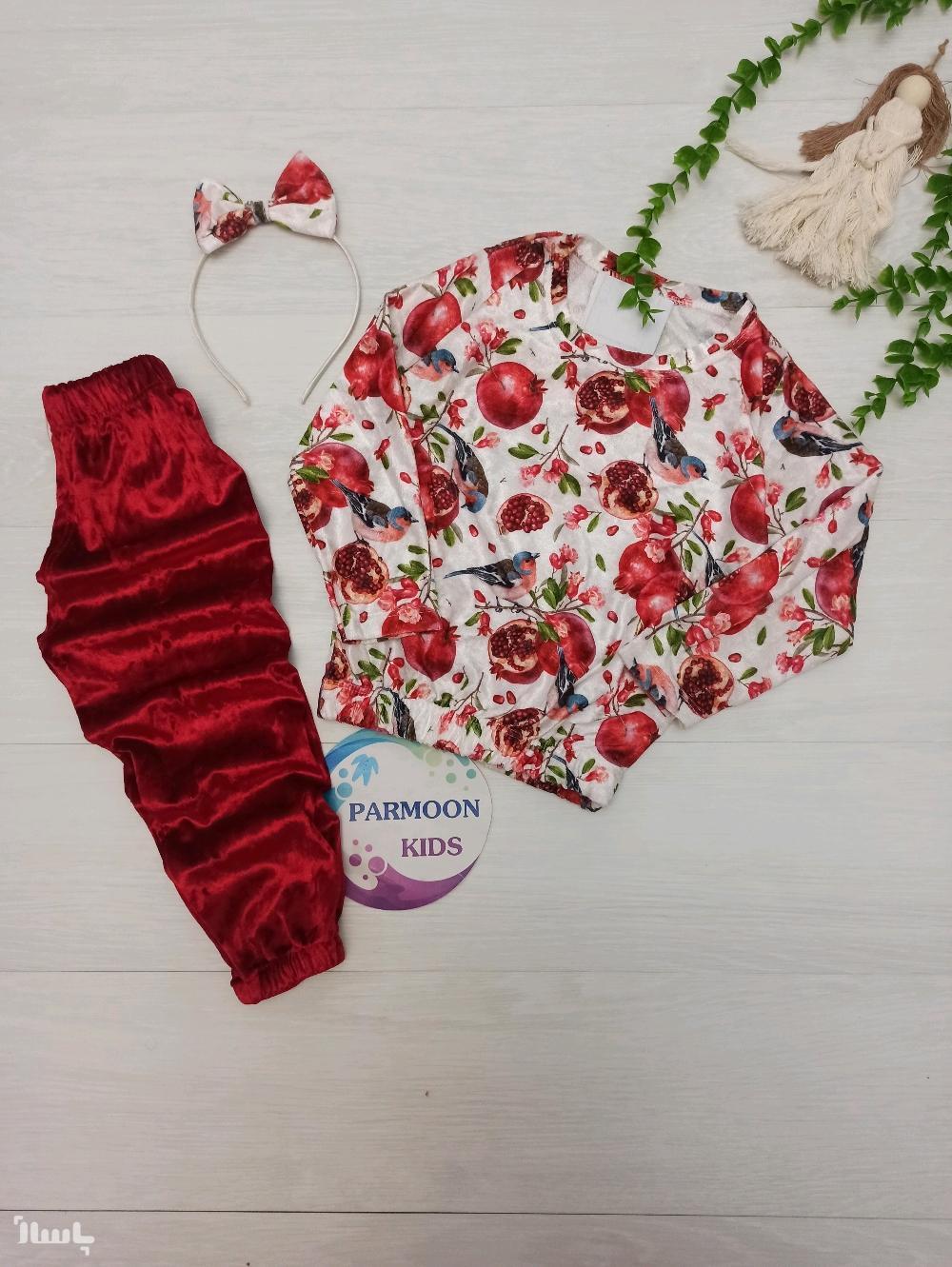 لباس یلدایی دخترانه طرح گل و انار سایز 40 الی 60