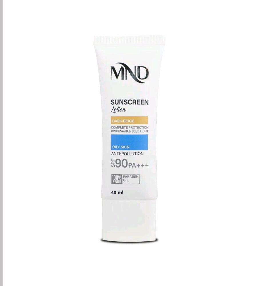 لوسیون ضد آفتاب با فاکتور حفاظتی 90 بژ تیره ام ان دی مناسب پوست چرب