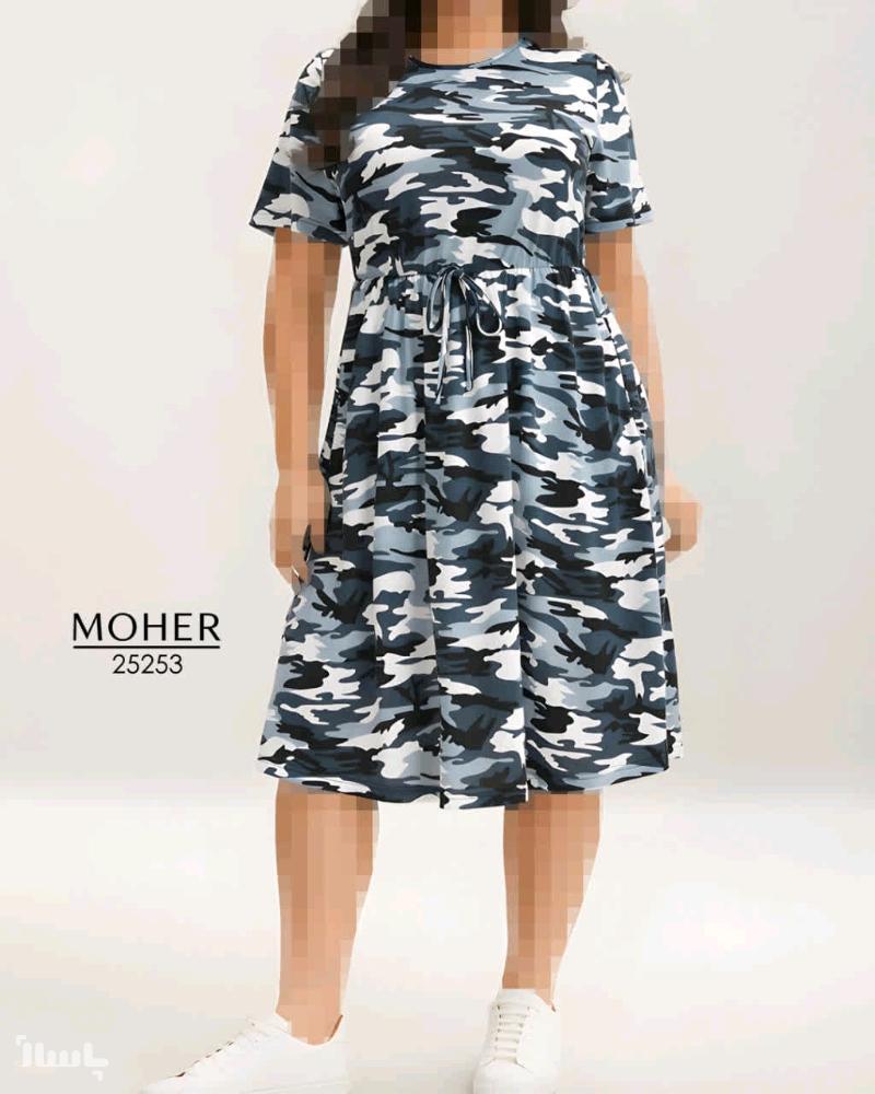 این مدل با ترکیب رنگهای مشکی، طوسی، آبی و سفید، جلوهای مدرن و خاص به استایل شما میبخشد. طراحی آزاد و کمر کشی آن باعث میشود تنخور لباس بسیار خوشفرم و راحت باشد. پارچه سبک و کشی این مدل، برای استفاده روزمره، استراحت در خانه یا دورهمیهای دوستانه ایدهآل است.