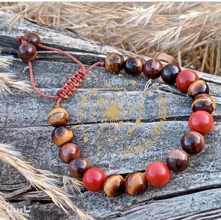 دستبند ترکیبی جاسپر قرمز وجاسپر کافی و چشم ببر درمان کبدو کردش خون