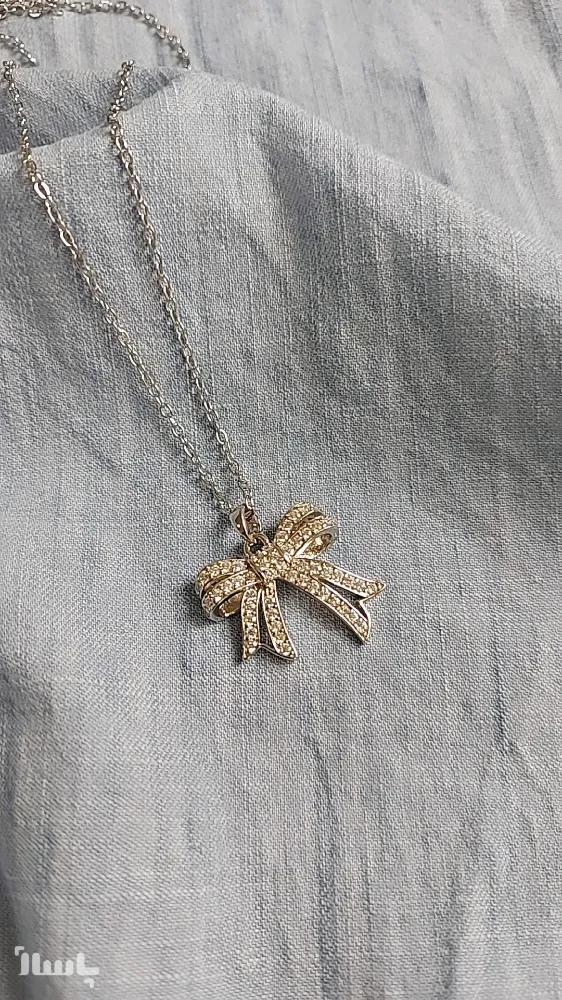 گردنبند جواهری زنانه پاپیون با زنجیر استیل 45 سانتی