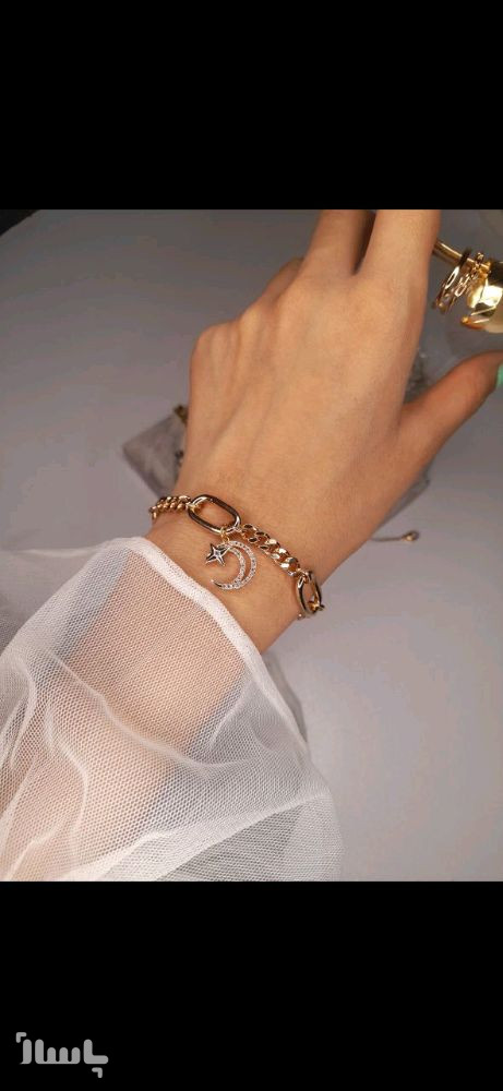 دستبند زنجیری ژوپینگ آویز ماه و ستاره آبکاری طلا ارسال رایگان
