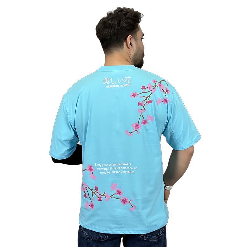 تیشرت آستین کوتاه طرح گل رنگ آبی آسمانی