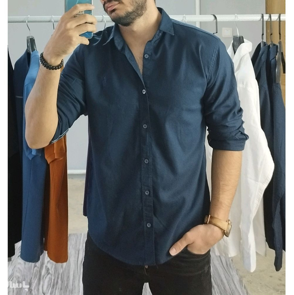پیراهن polo ساده مردانه نخ پنبه آستین بلند مدل qx100x