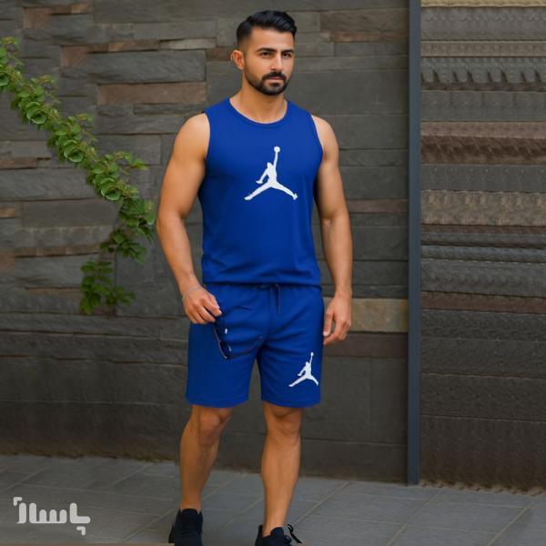 ست رکابی شلوارک مردانه اسپرت جردن رنگ آبی کاربنی