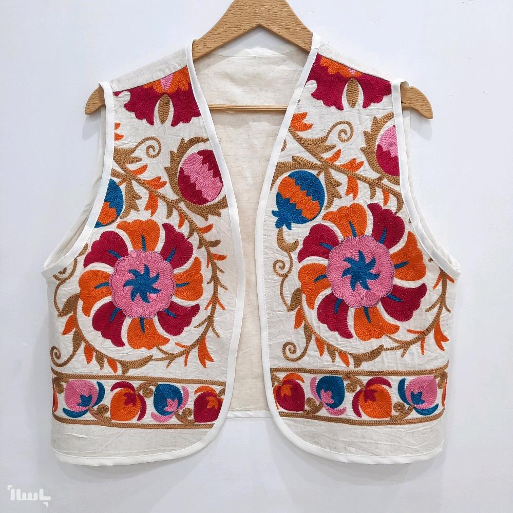 جنس ان لینن سوزندوزی است. قد ان حدود 50س است. پشت کار ساده است.