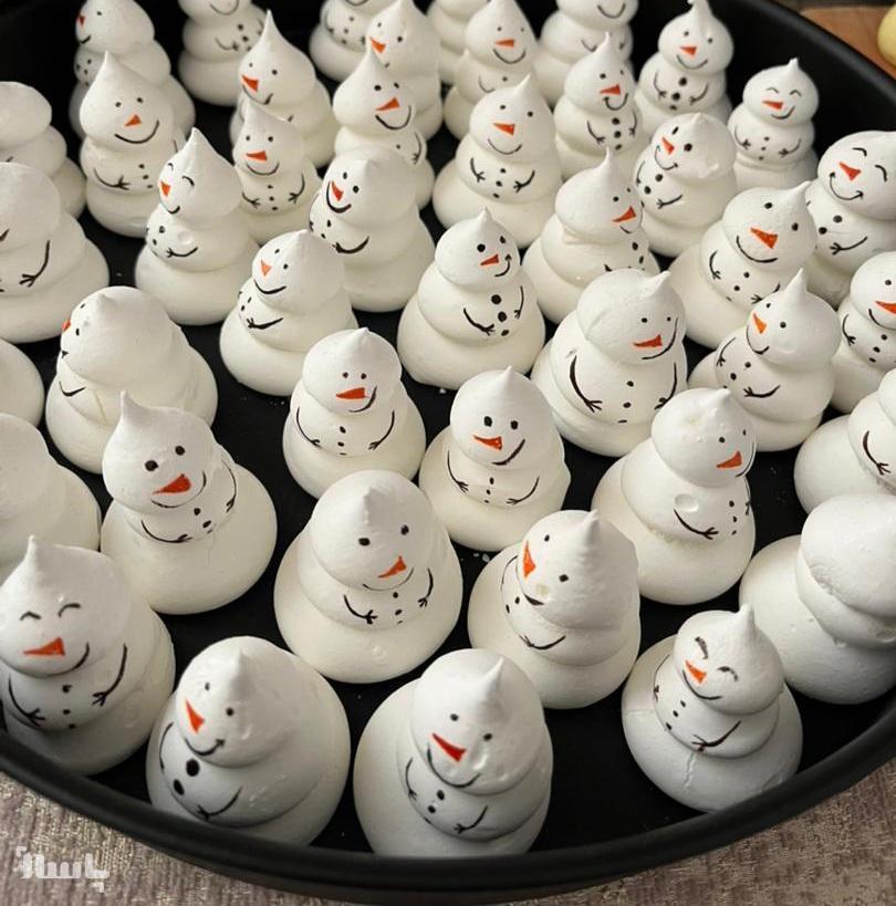 شیرینی مرنگ آدم برفی با طعم وانیل مناسب تزئین کیک و دسر و پذیرایی در جشن تولدها و دورهمی ها و مناسب هدیه دادن به کودکان و...