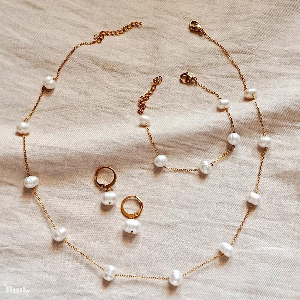 ست گردنبند و دستبند گوشواره مروارید پرورشی اصل