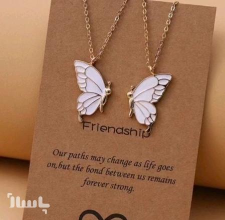 ست دو عددی گردنبند استیل با پلاک پروانه