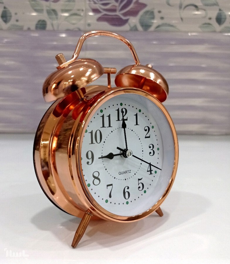 ساعت رومیزی شماطه دار (زنگ دار) فلزی طرح مس